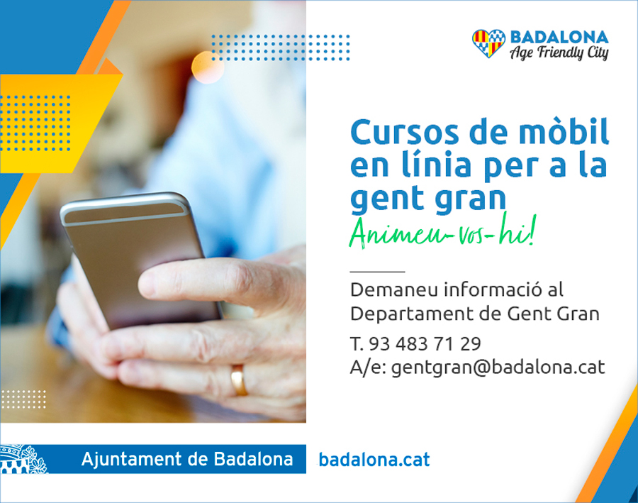 El Departament de Gent Gran de l’Ajuntament de Badalona ofereix una formació molt pràctica sobre l’ús del telèfon mòbil. Els cursos es fan en línia, per a grups de vuit persones i en vuit sessions setmanals d’una hora i mitja cadascuna.