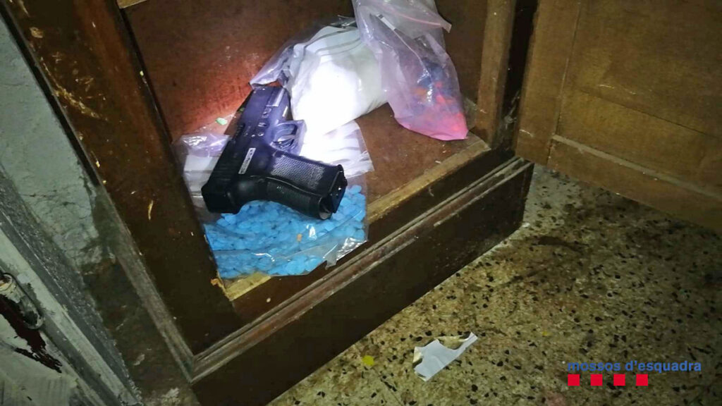 En el marc de l’operatiu es van localitzar en les diverses estances, 6 quilos de cabdells de marihuana, 500 grams d’haixix, 1.103 comprimits i 13 quilos de pols de substàncies psicotròpiques, 2 quilos de pols per fabricar comprimits d’èxtasi, 1.500 grams de metamfetamina, 2.300 grams d’amfetamina, 8 quilos de pasta de cocaïna, 250 grams de bolets al·lucinògens i 310 grams d’heroïna. També es van localitzar 14.315 euros fraccionats i una arma de fogueig.