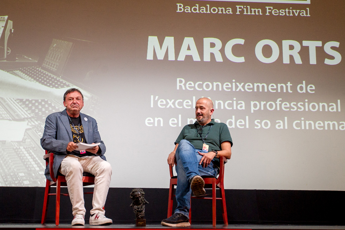 Marc Orts, tècnic de so cinematogràfic, ha rebut avui a la tarda un reconeixement especial de FILMETS “per la seva excel·lència professional en el món del so al cinema”. El director general de Badalona, Xavier Casanovas, ha lliurat una placa commemorativa a Marc Orts, que ha guanyat durant tota la seva carrera professional 7 premis Goya al millor so i 7 premis Gaudí.