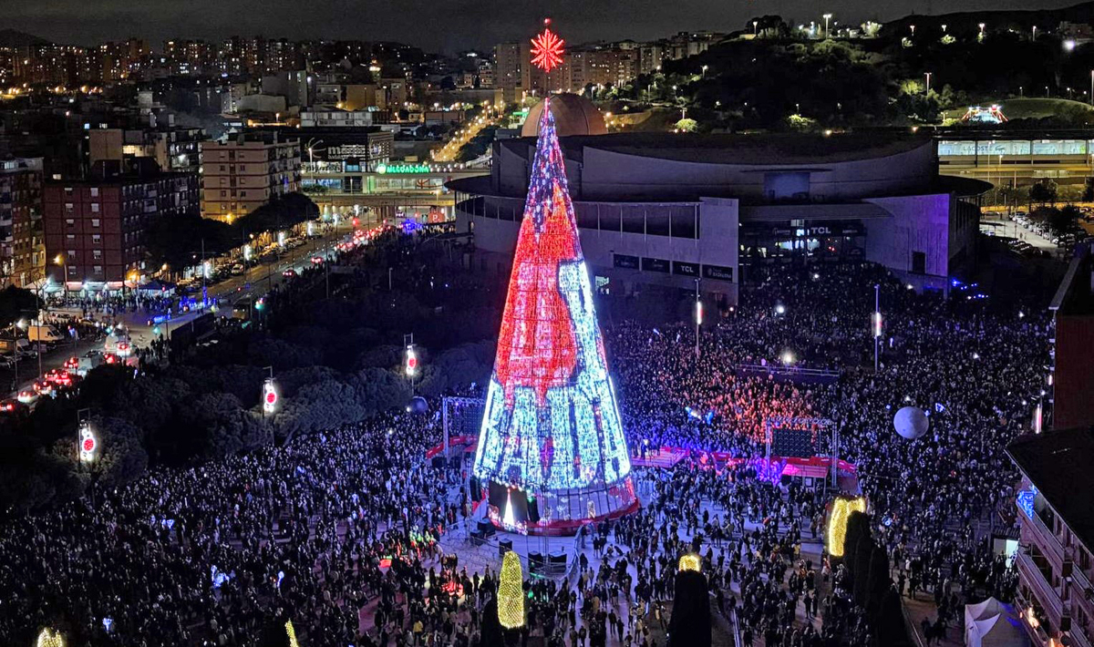 Cinquanta mil persones han omplert aquest vespre la plaça del President Tarradellas per assistir a la inauguració de l’arbre monumental de Nadal de Badalona, que enguany és més alt que l’any passat, superant els 42 metres d’altura. El gran arbre té 15 metres de diàmetre i és transitable, disposa de 100.000 punts led de llum i ofereix un gran espectacle lumínic i musical.