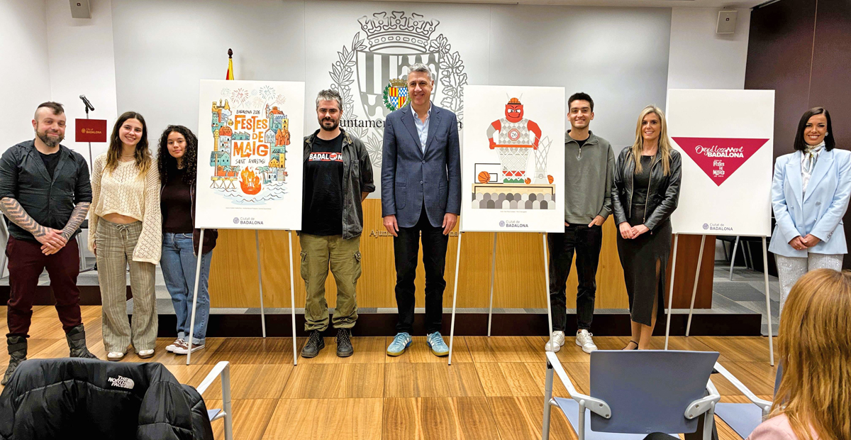 La presentació del Dimoni, el disseny del cartell i el mocador de les Festes de Maig de Badalona 2026 s’ha fet aquest dijous al matí a la sala de premsa de l’edifici El Viver. L’acte ha comptat amb la presència de l’alcalde de Badalona, Xavier Garcia Albiol; de la primera tinenta d’alcaldia, Cristina Agüera; de la regidora de Cultura, Vanesa González, i dels autors dels dissenys guanyadors del cartell (Andrea Macias, Guillem Vidaña i Carlota Daura) i del dimoni de les Festes de Maig 2026 (Àlex Prats). També ha assistit l’encarregat de la construcció del Dimoni, Carles Piera.