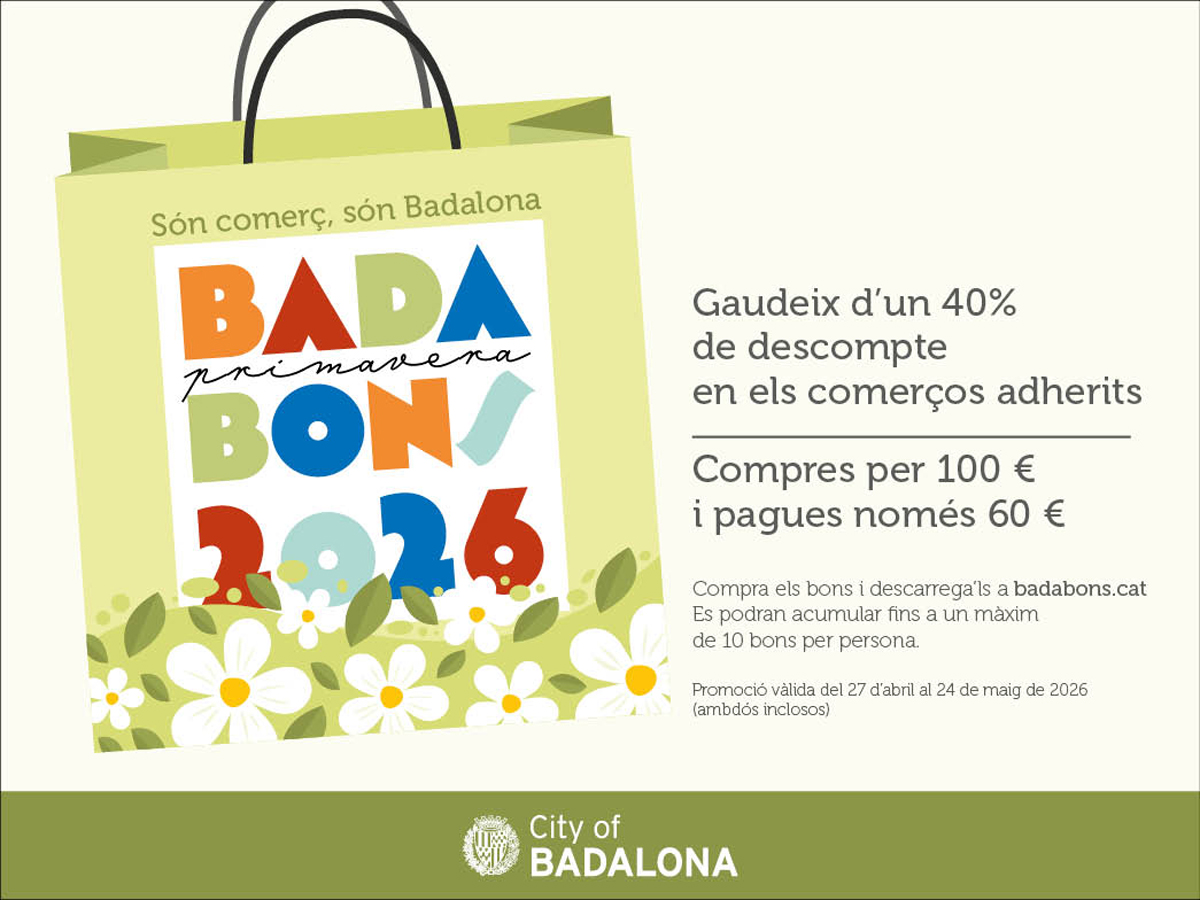 Avui comencen els ‘Badabons’ de primavera, la campanya de vals de descompte en els comerços de proximitat i restaurants de la ciutat. Aquesta edició serà la primera de les dues campanyes que l’Ajuntament de Badalona impulsarà durant l’any 2026, una ara i una altra a la tardor.